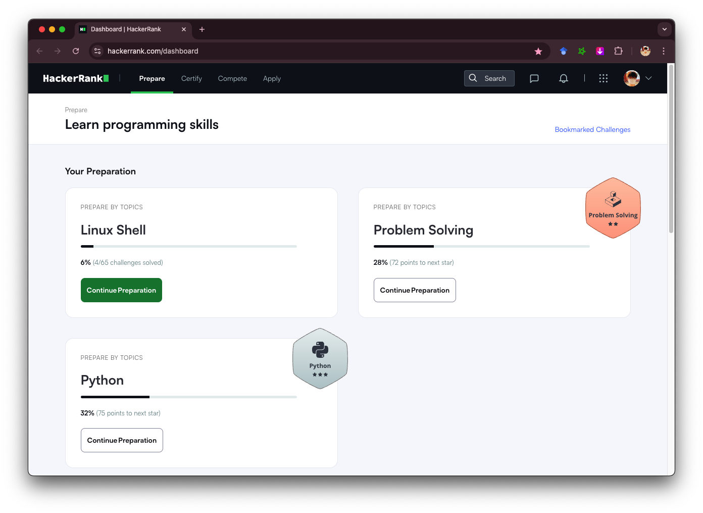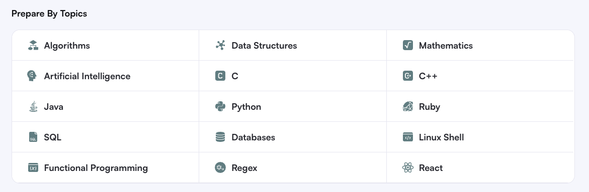 해커랭크 사이트 구성은 다음과 같습니다.