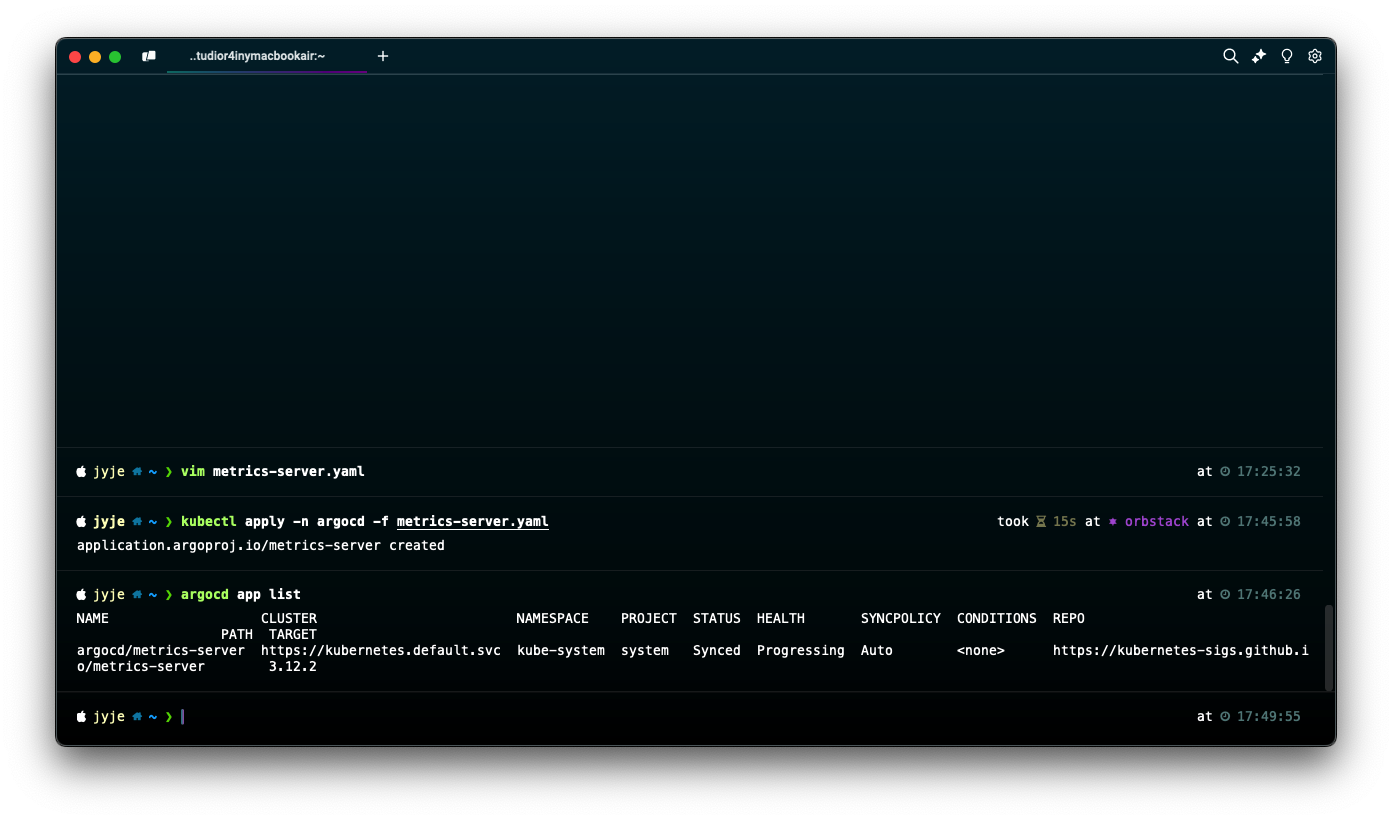 kubectl apply -n argocd -f metrics-server.yaml