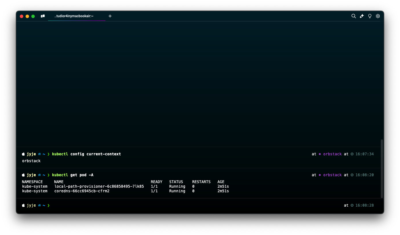 먼저 쿠버네티스 클러스터를 생성합니다. `kubeconfig`를 쓸 수 있거나 최고 관리자(master)권한으로 `kubectl` 명령어를 쓸 수 있다면 어떤 쿠버네티스라도 상관없습니다. 저는 오브스택(OrbStack)로 로컬 쿠버네티스를 구성하였습니다. 여러분은 AWS EKS, GCP GKE, minikube, kind, 바닐라 k8s 등 자유롭게 설정하시면 됩니다.