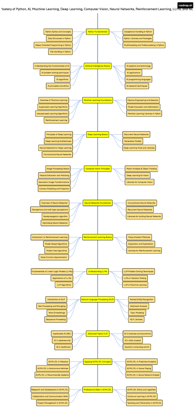 Mastery of Python, AI, Machine Learning, Deep Learning, Computer Vision, Neural Networks, Reinforcement Learning, LLMs, and NLP