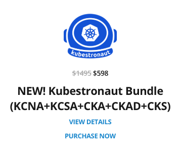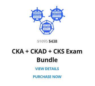 할인폭이 가장 큰 3개의 시험 번들을 추천합니다. CKA, CKAD를 보유하셨다면 `CYBER24CC` 쿠폰을 이용하여 CKS만 따로 구매하시면 됩니다. 그리고 Udemy 강의와 유사한 KodeKloud 강의(Mumshad Mannambeth 강사님이 설립한 회사)를 추천합니다.